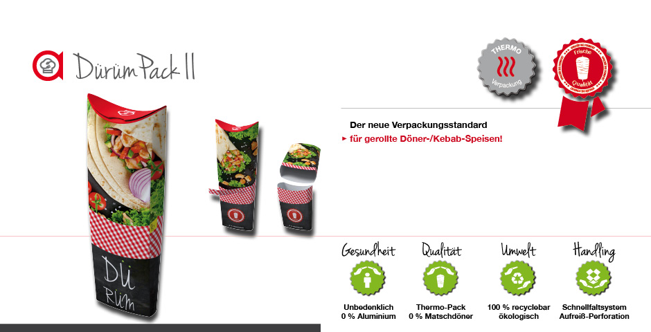 Speziell für die Fastfood-Branche entwickelte wir spezielle Verpackungslösungen, die allen voran herkömmliche Verpackungen aus den bedenklichen Materialien Aluminium und Kunststoff ersetzen.